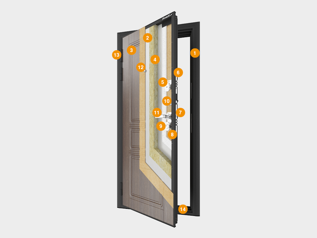 Двери «Премиум Плюс» предназначены для широкого спектра применения, в том числе для установки в частных домовладениях. В качестве наполнения используется минераловатная плита высокой плотности и пенополистирол, которые наряду с тремя контурами уплотнителя обеспечивают максимальные показатели теплоэффективности. Лаконичный и строгий внешний вид дверей привлекает внимание, а ощутимая тяжесть полотна, которая крепится на три петли, говорит о ее надежности и прочности. Модель «Премиум Плюс» предусматривает комплектацию двумя раздельными замками — сувальдным и цилиндровым. Такая комбинация запирающих механизмов обеспечивает максимальную надежность и защиту от взлома. Цилиндр с поворотной ручкой оснащен снаружи броненакладкой, защищающей его от выбивания и высверливания. Разнообразие ПВХ-пленок и МДФ-панелей с декоративной фрезеровкой позволяют подобрать дверь к любому интерьеру.