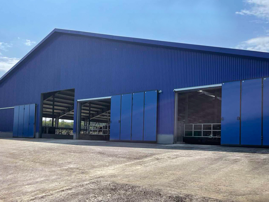 Молочный комплекс, установлено 16 промышленных откатных ворот без нижней направляющей под проемы 3 800 × 3 000 и 2 700 × 3 000 мм. Рузаевский р-н, респ. Мордовия