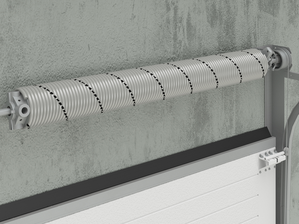 Торсионный механизм рассчитан на 25 000 циклов. Долговечность конструкции ворот обеспечивает открывание и закрывание полотна без усилий.