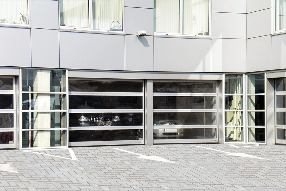 Панорамные секционные ворота DoorHan полностью или частично состоят из панорамных панелей, благодаря чему являются идеальным вариантом для установки в зданиях с остекленными фасадами, например, в автомобильных салонах. Изготовление панорамных панелей из алюминиевых профилей обеспечивает их прочность, а для повышения энергосберегающих и термоизоляционных свойств ворот рекомендуется комбинировать панорамные и сэндвич-панели, а также использовать алюминиевые профили T-bridge, которые снащены термовставкой из полиамида.